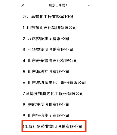 Since the launch of the activity in June, the enterprise application, department recommendation, expert review and other procedures have been completed according to the prescribed procedures, forming a shortlist of top 10 private enterprises in Shandong in 2022. Hailir Pharmaceutical Group Co., Ltd. was successfully selected as one of the top 100 private enterprises in Shandong! In this series of lists, the Group was ranked 10th in the top 10 leading high-end chemical industry and 84th in the top 100 innovation companies.