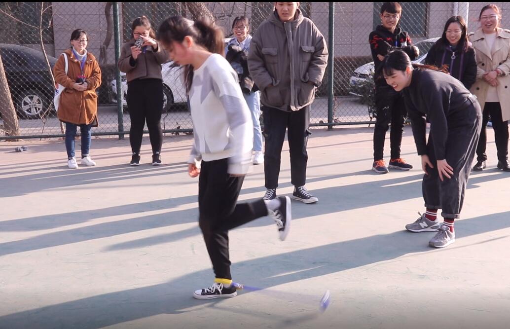 Qingdao's wind is really everywhere, but still can not stop the girls show the strength of shuttlecock kicking.
