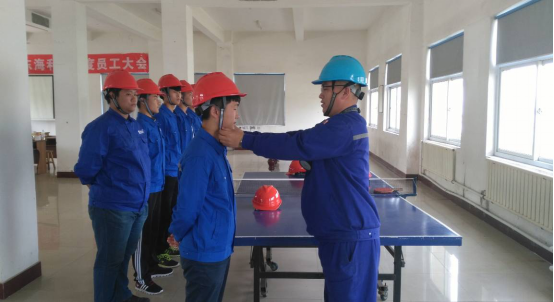 廠級(jí)培訓(xùn)結(jié)束后,18名學(xué)生分配到車(chē)間。一車(chē)間主任王玉雷、二車(chē)間主任劉春輝與學(xué)生見(jiàn)面,兩位主任為18名大學(xué)生佩戴安全帽,整理工作服,檢查員工“標(biāo)配”裝備。期望新員工的加入,為海利爾的明天注入新鮮活力。
